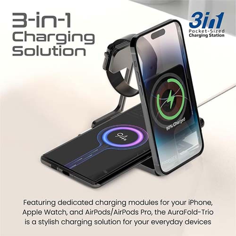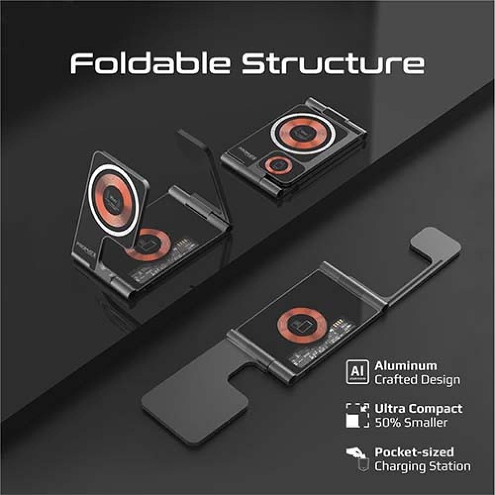 شاحن Promate AuraFold Trio اللاسلكي (قاعدة شحن 3 في 1)