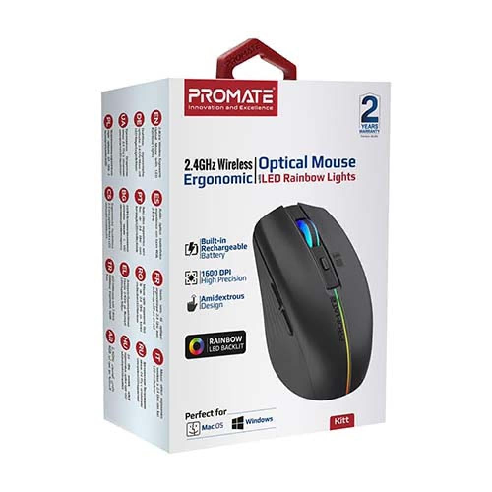 🖱️فأرة لاسلكية Promate Kitt للكمبيوتر | قابلة لإعادة الشحن، إضاءة RGB، ودقة DPI قابلة للتعديل