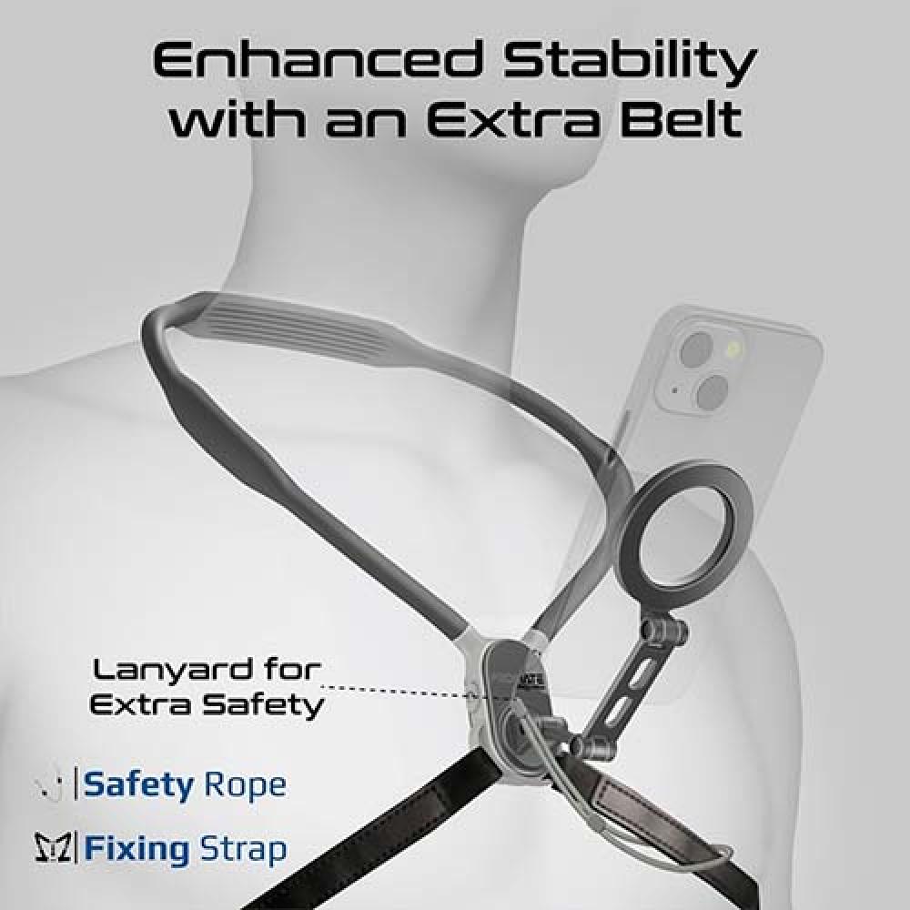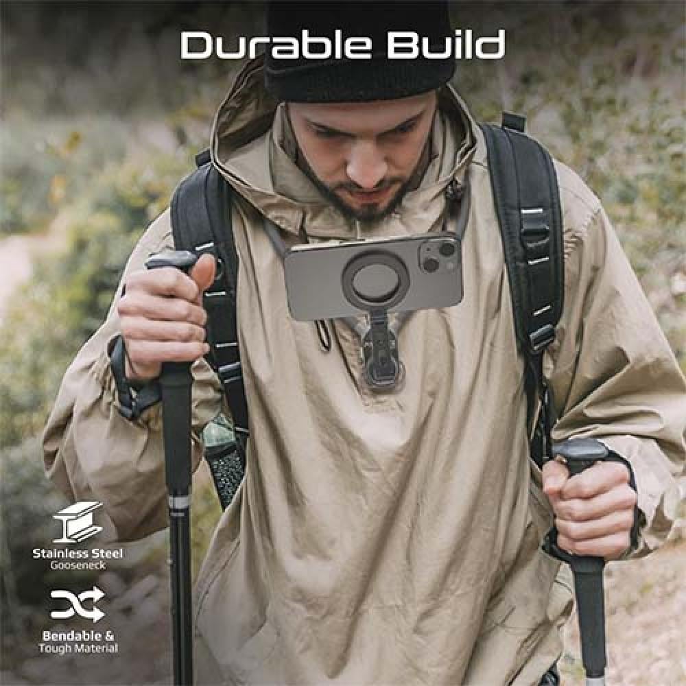 تحكّم بأسلوب إجراء مكالمات وتسجيل الفيديو مع حامل الجوال المغناطيسي Promate MagView. حامل جوال مرن يُرتدى حول الرقبة ويسمح لك بتركيز الكاميرا على وجهك بدون استخدام يديك بتصميم مرن ومريح، كما يتيح لك مشاهدة الأفلام، أو اتباع الوصفات، أو ممارسة التمارين بكل حرية. يوفر تثبيت مغناطيسي قوي (N52) متوافق مع MagSafe وأجهزة iPhone الحديثة، ويأتي مع حلقة معدنية للتثبيت على الهواتف الأخرى. بفضل مرونته، يمكن استخدامه أيضًا كحامل مكتبي أو على السرير، مما يجعله قطعة إكسسوار متعددة الاستخدامات ومرفق حزام أمان إضافي (Lanyard) لمزيد من الثبات حتى أثناء الحركة.