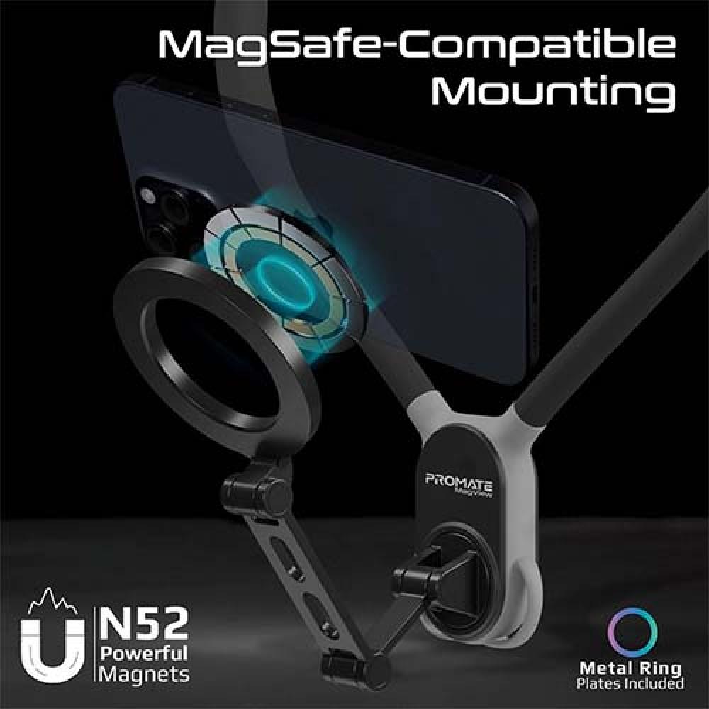 حامل جوال رقبة مغناطيسي Promate MagView | حامل مرن متعدد الاستخدامات، بدوران 360°، متوافق مع MagSafe