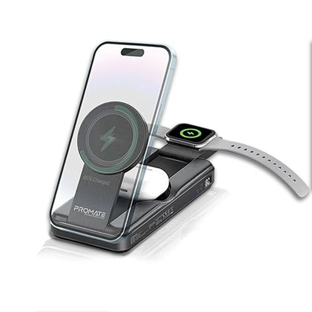 اكتشف هذا الباوربانك الجبار المتعدد مع بطارية Promate PowerPack-Fold المتنقلة شاحن بسعة 10,000 mAh مزود بمحطات شحن iPhone لاسلكي MagSafe بقوة 15 واط، ساعة Apple ب 2 واط، سماعات AirPods ب5 واط، إلى جانب منافذ USB-C PD 20 W وUSB-A QC 3.0 18 W في تصميم محوّل يُصبح قاعدة شحن قابلة للطي. يدعم شحن الأجهزة أثناء شحن البطارية نفسها (Pass-Through)، مع شاشة عرض LED واضحة تُظهر لك حالة البطارية. مما يجعل منه مثاليًا للمكتب أو السفر. حماية ذكية وكل ذلك في تصميم أنيق ومضغوط.